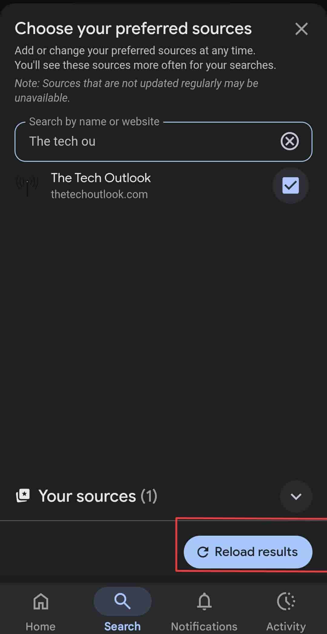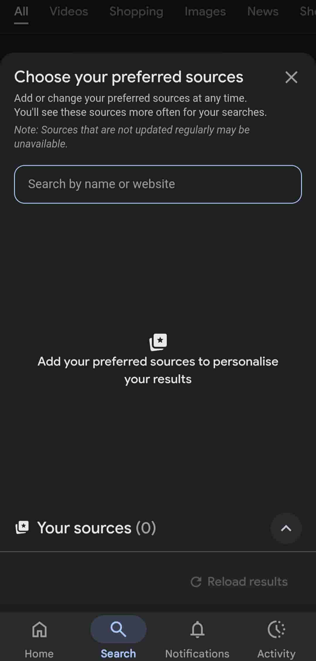 Do note that you will still see content from other sites, and can manage your selections at any time. After adding your preferred source, you will start to see more of their articles prominently displayed within Top Stories or in a dedicated “From your sources” section on the search results page, when those sources have published fresh and relevant content for your search.