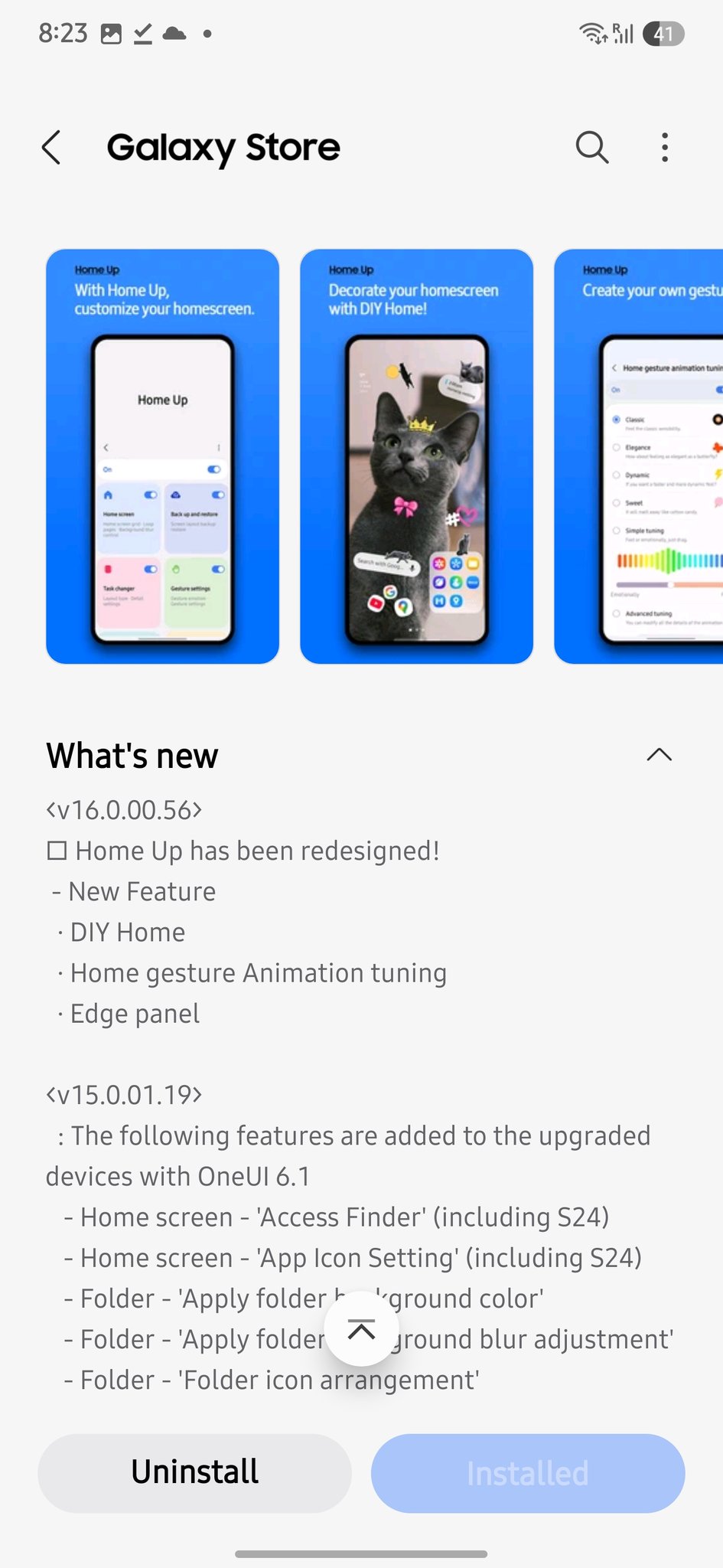 The Home Up app with the firmware version of ‘v16.0.00.56’ has been made available to Galaxy S25 series users officially via the Galaxy Store app, and few of its new features as listed on the app page includes a redesigned user interface with new features, DIY home, home gesture animation tuning, and edge panel.