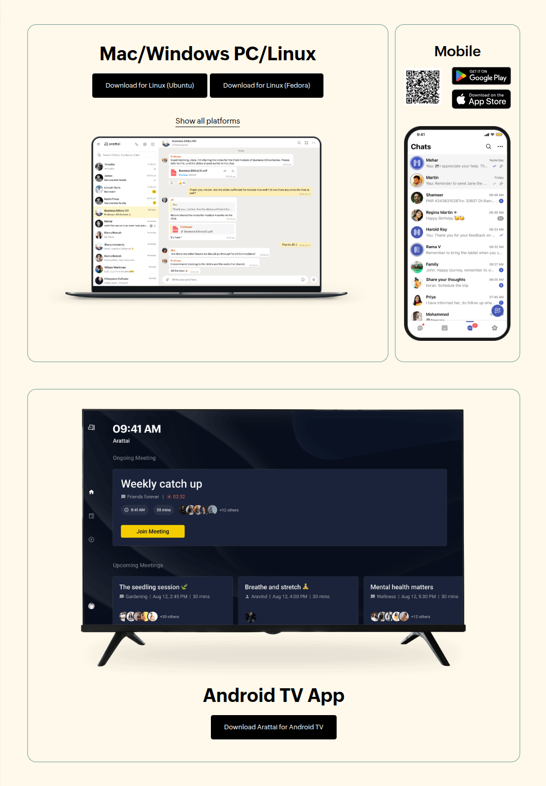 Regarding Zoho’s Arattai, it is available for download on mobile (iOS and Android), desktop (Mac, Windows, and Linux), and also on smart TVs (Android TV). Interested users can download it (here) absolutely free of charge.