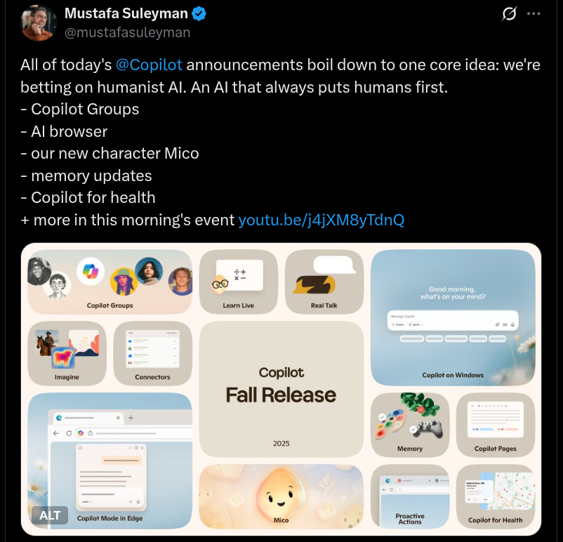 Check out more about the Copilot Fall 2025 update and its changelogs below.