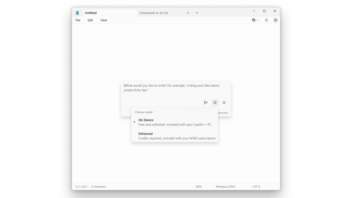 Microsoft releases a new update to Windows 11 Notepad app for Windows Insider; Generate, re-write and summarize text using on-device AI models