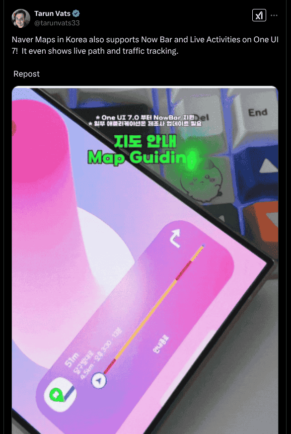 Naver Maps Also Reported to Support Now Bar and Live Activities on One UI 7 in South Korea