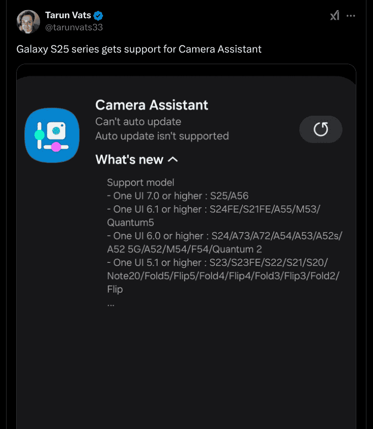 Now, the Camera Assistant app support has also been added for the latest Galaxy S25 series smartphones and following the availability or delivery of the new devices next month in February 2025 onwards, users will be able to directly access it without waiting any longer.