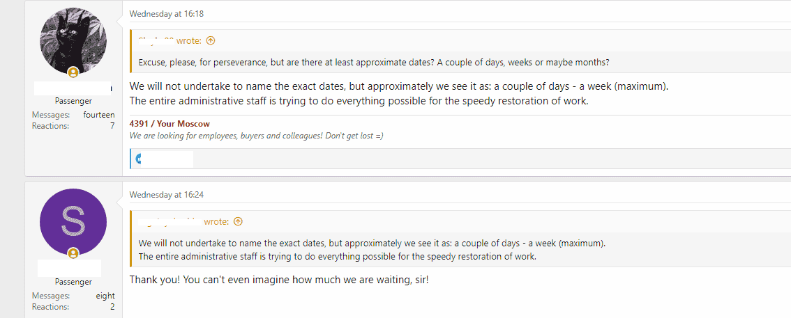A user claims to be affiliated with Hydra and claims that the marketplace will be restored in this post. It’s unclear how that would happen given that its servers are no longer connected to the onion network.
