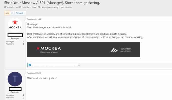 The most active thread on Rutor is about reuniting people after Hydra was shut down. The store manager is gathering his employees with the post in order to sell “treasures,” or what Hydra refers to as illicit goods. A user can be seen inquiring about where to order goods.