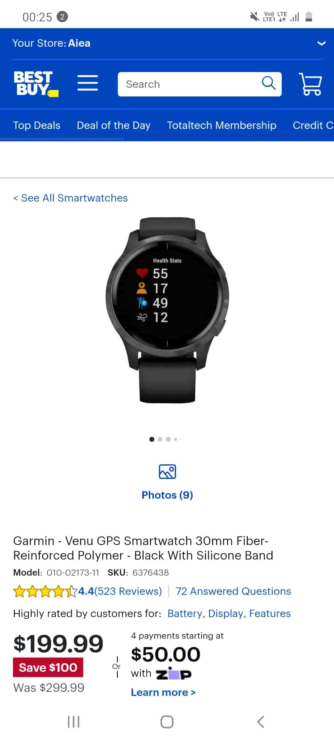 Check this deal on the Garmin Venu SmartWatch only on Best Buy!