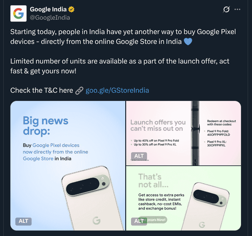 Google India has now officially announced via its X handle that the brand’s Pixel products can now be bought directly from the online Google Store in India. As part of this exciting announcement, the brand has also made certain exciting offers too now available for Indian consumers.