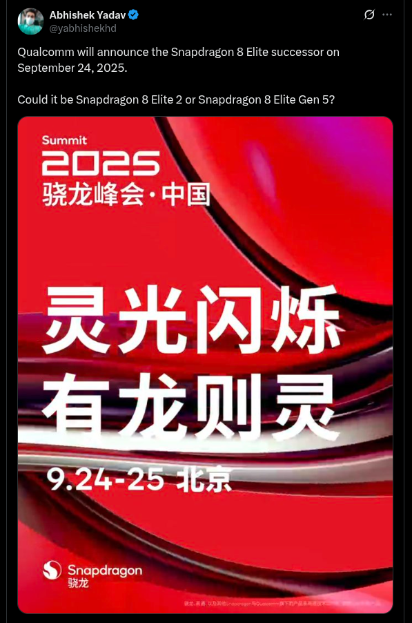 Qualcomm Revealed to Announce its Snapdragon 8 Elite Successor on 24th September 2025