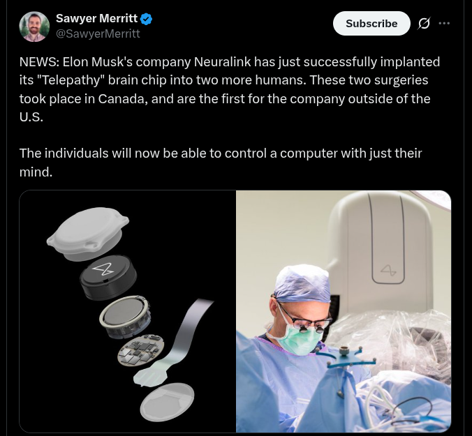 Neuralink Implants its Telepathy Brain Chip into Two More Humans in Canada, First Time Outside the United States