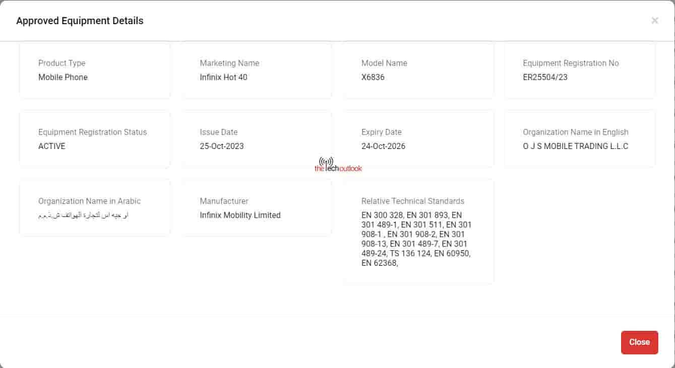 While we recently spotted Infinix HOT 40 on the TDRA certification website with model number X6836.