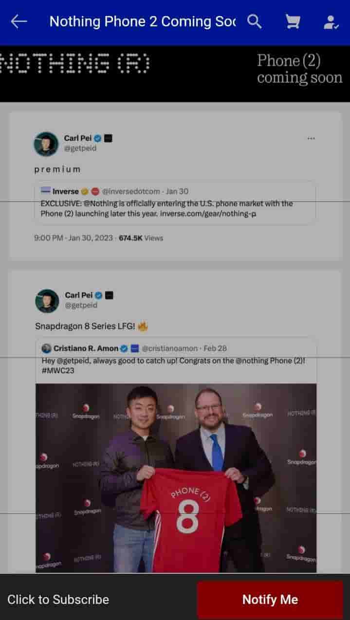The listing on the website has now confirmed that earlier speculations were true and the smartphone will soon be making its way into the Indian market also. The page on the official website emphasizes the word “premium” which could mean that the device will be arriving with some major upgrades and improvements. Also, it showcased the tweet by the CEO of Nothing Carl Pei that this device will be powered by the Qualcomm Snapdragon 8 series processor.
