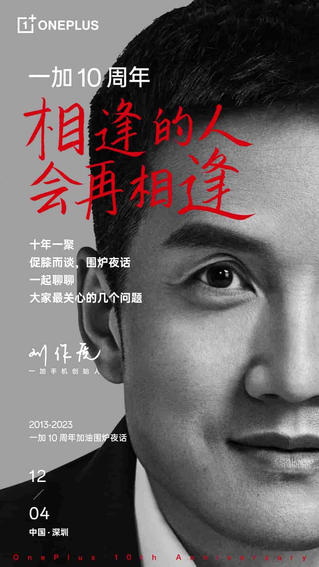 The upcoming OnePlus 12 smartphone will be debuting next month on the 4th of December 2023 in Shenzhen, China, at 7 PM local time. The day also marks the 10th anniversary of the brand, and the OnePlus CEO, Pete Lau, who is also one of the co-founders of the company, will be addressing the audience at the scheduled launch event, along with a chat session.
