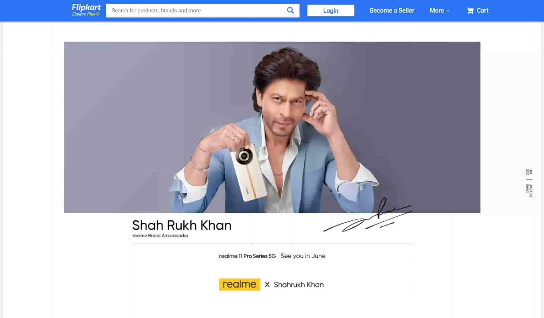 A new launch page has also now been listed on Flipkart with Shah Rukh Khan showcasing the Realme 11 Pro+ smartphone, the high-end smartphone of the series.
