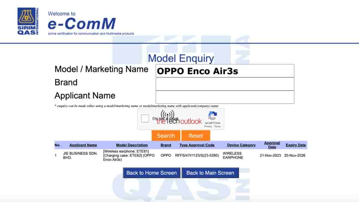 Apart from this upcoming smartwatch Oppo Enco Air 3S earbuds were also spotted on the SIRIM certification website with model number ETE81.