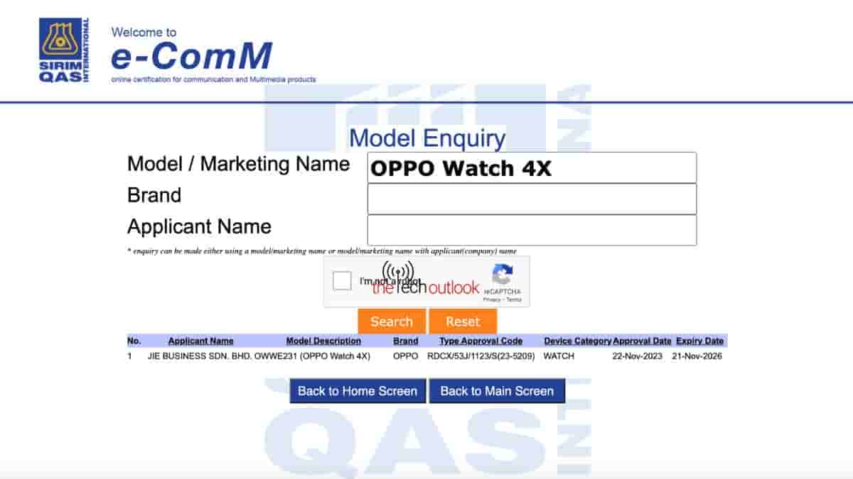 Previously the same model number was spotted on the IMDA certification website but it was believed that it might be the Oppo Watch 4. However, the listing of the device on SIRIM now confirms that the model number belongs to the Oppo Watch 4X.