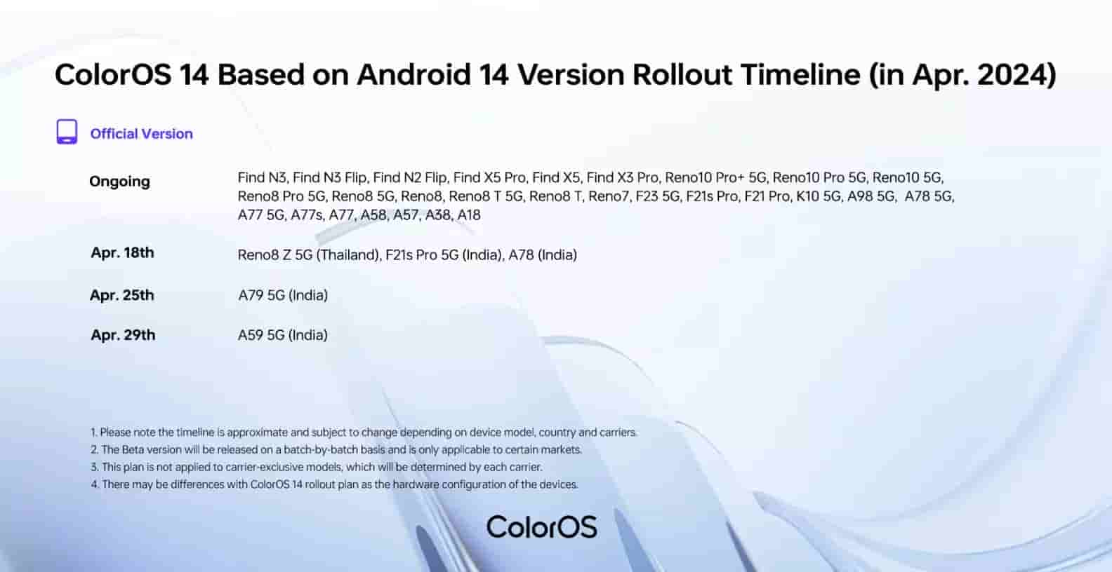 ColorOS 14 Rollout Timeline for April 2024 (Official Verison)