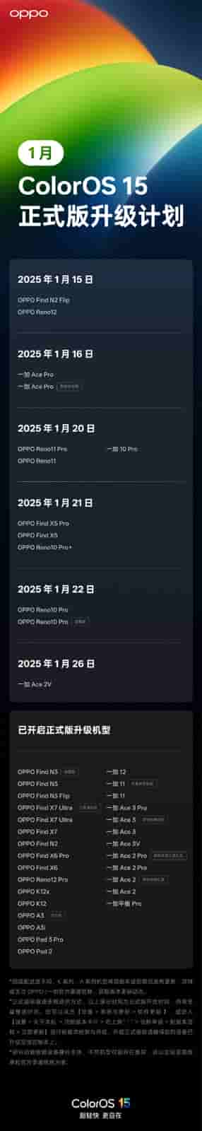 ColorOS 15 Official Version Upgrade Plan: January 2025