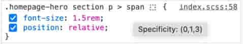 CSS rules specificity is now displayed in a tooltip when hovering a CSS rule selector in the Inspector Rules view. This can help web developers understand why a given rule is applied before another.