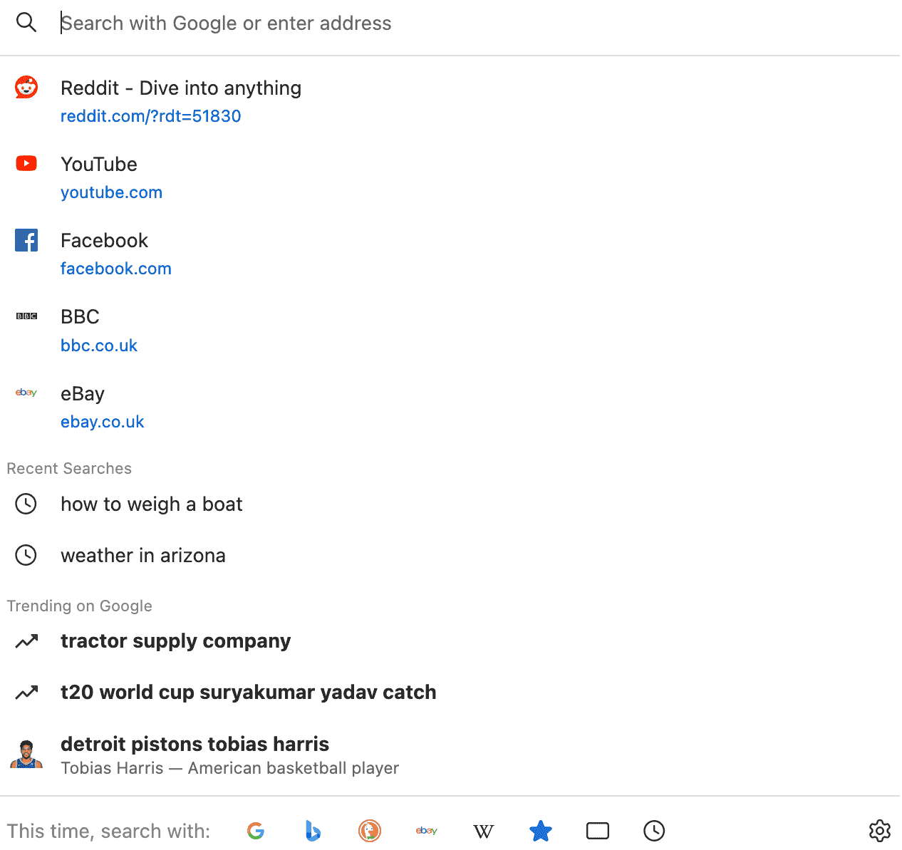 If you are in the US or Canada, you will also be able to see your recent searches along with trending topics when you type something in the address bar.