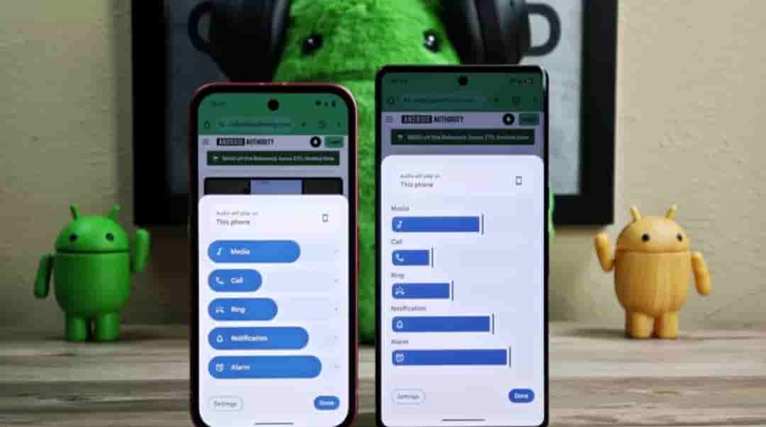 New volume UI replaces those thick sliders with thinner ones that include distinct handles. The volume slider that appears when you press the volume key is also changing. The new slider is less rounded and features a thin rectangular handle. The sound mode selector at the top has also been tweaked, other modes now appear within discrete rounded rectangles.