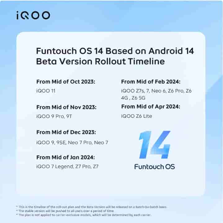 Vivo sub-brand iQOO has revealed an Android 14-based Funtouch OS 14 roadmap for the iQOO smartphones in India. After Google iQOO will be the second brand to begin this rollout. Just recently Google also started rolling out the stable Android 14 to the Pixel phones.