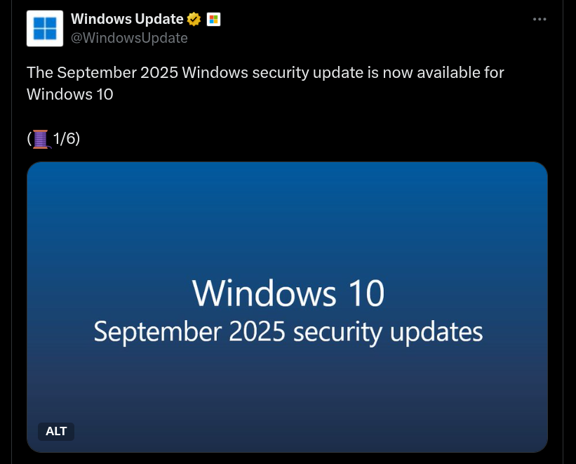 Microsoft Officially Releases its Windows 10 September 2025 Security Updates: Fixes for Certain Windows Operating System Issues