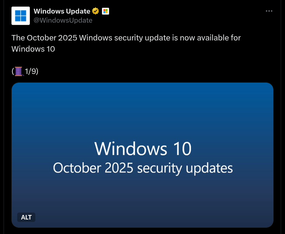 Windows 10 October 2025 Security Updates Now Rolling Out