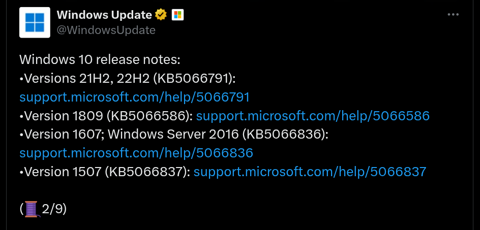 As mentioned, the Windows 10 October 2025 security updates are now out, and users of the ’21H2′, ’22H2′, ‘1809’, ‘1607’, and the ‘1507’ versions are getting the update with the respective firmware versions of ‘KB5066791’, ‘KB5066586’, ‘KB5066836’, and ‘KB5066837’.