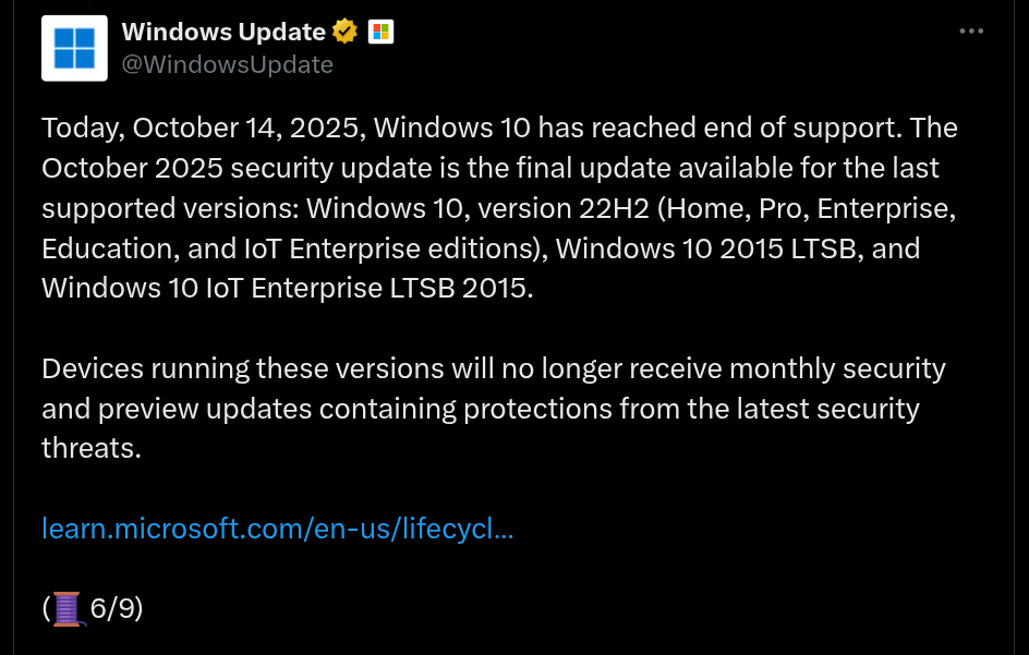 Microsoft Officially Releases the Windows 10 October 2025 Security Updates: Windows 10 Reaches End of Support