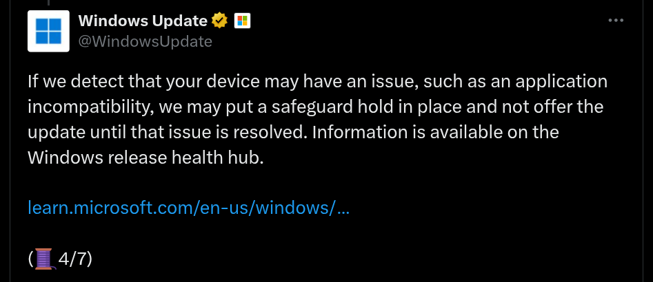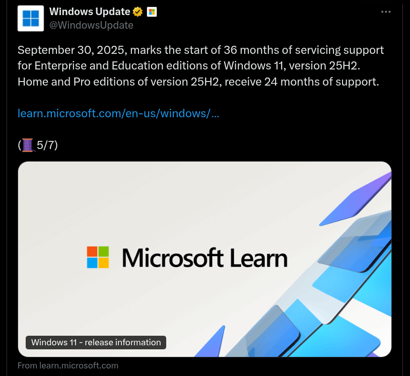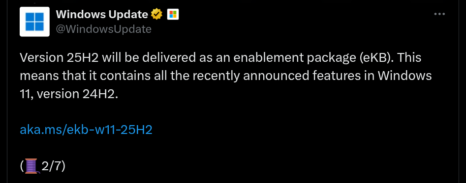 Regarding the known issues, trouble playing certain BluRay/DVD/Digital TV applications and update failure for updates installed via WUSA (from a shared folder) are two issues that have been identified in the latest Windows 11 2025 update or Windows 11 version 25H2. Both of these are now mitigated as well, reducing the intensity.