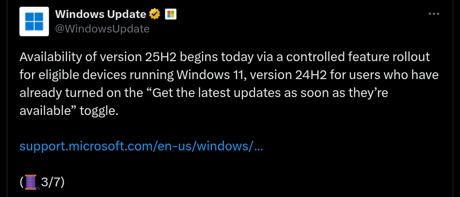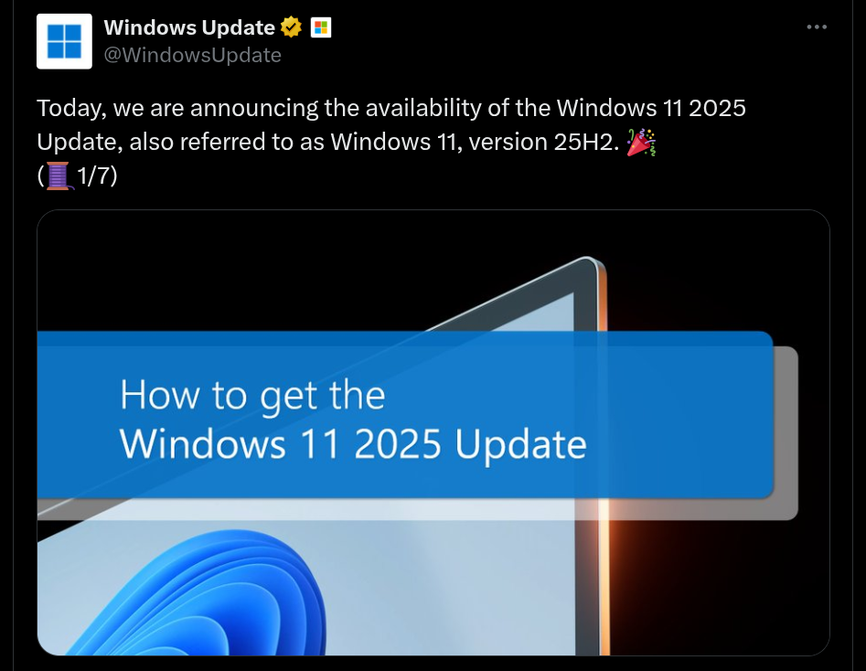 Microsoft Releases its Windows 11 2025 Update: Now Available to Users and Rolling-Out Using Servicing Technology