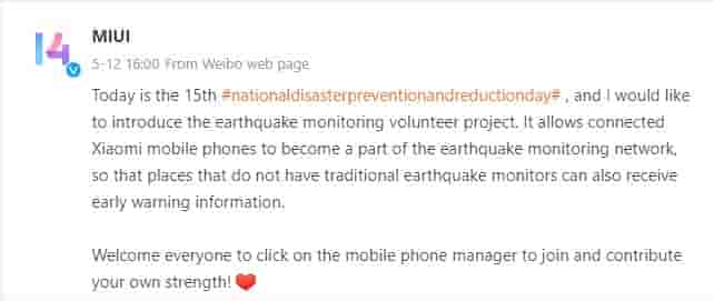 MIUI introduces earthquake monitoring volunteer project in China on the occasion of National Disaster prevention and Reduction Day
