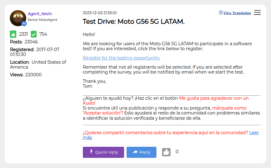 As mentioned, the Moto G56 5G smartphone users of the EMEA, LATAM, and Brasil regions have now been made eligible for the Android 16 beta program, and select users who register for it will be offered the Android 16 beta OTA update. For registering, users will need an account on Motorola’s community website and after creating it, navigate to the profile page and update the IMEI and serial number. Opt for MFN (Motorola Feedback Network), and then visit the respective update pages (for EMEA, for LATAM, for Brasil) and click on the registration links given. In the next window, fill out the necessary details and submit the application.