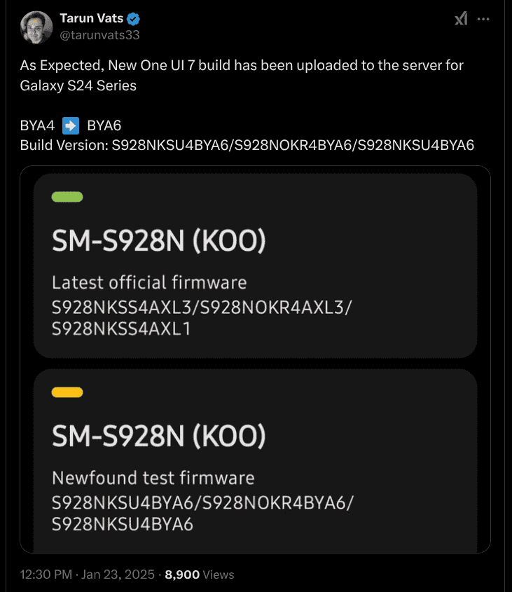 New One UI 7 ‘BYA6’ Version Build Updated on Official Server for Galaxy S24 Series