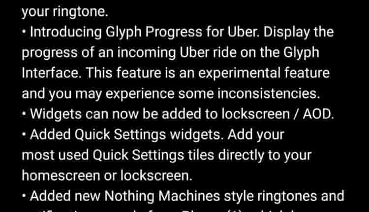 This update introduces the Glyph Composer app that will let you customize the Glyph sequences and set them as ringtones. Thanks to its lightning elements on the rear side, it can now be customized better than before. Nothing has also introduced Glyph progress for Uber, which is an experimental feature. It will show the progress of an incoming Uber ride.