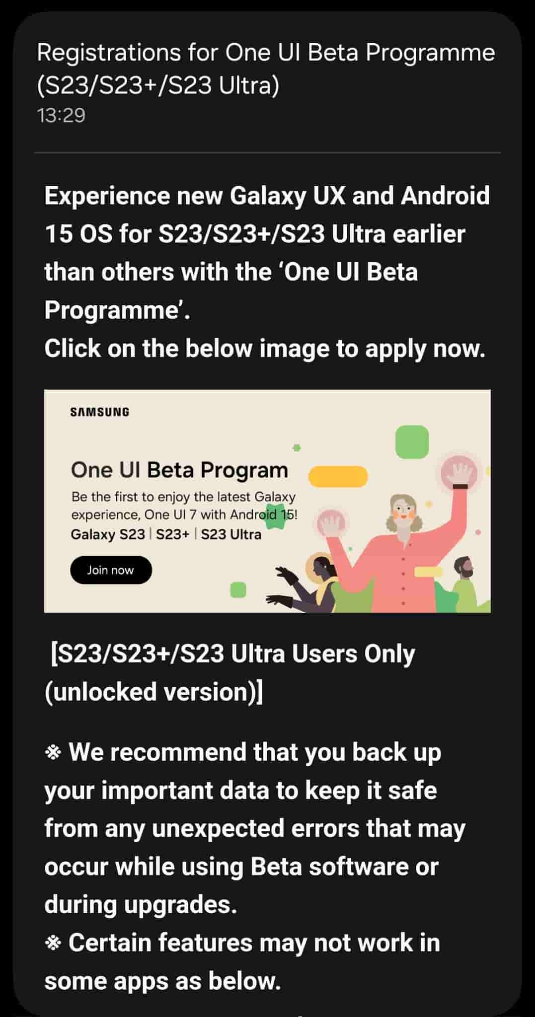 Galaxy S23 Series – One UI 7 Beta Program Now Live in India and South Korea