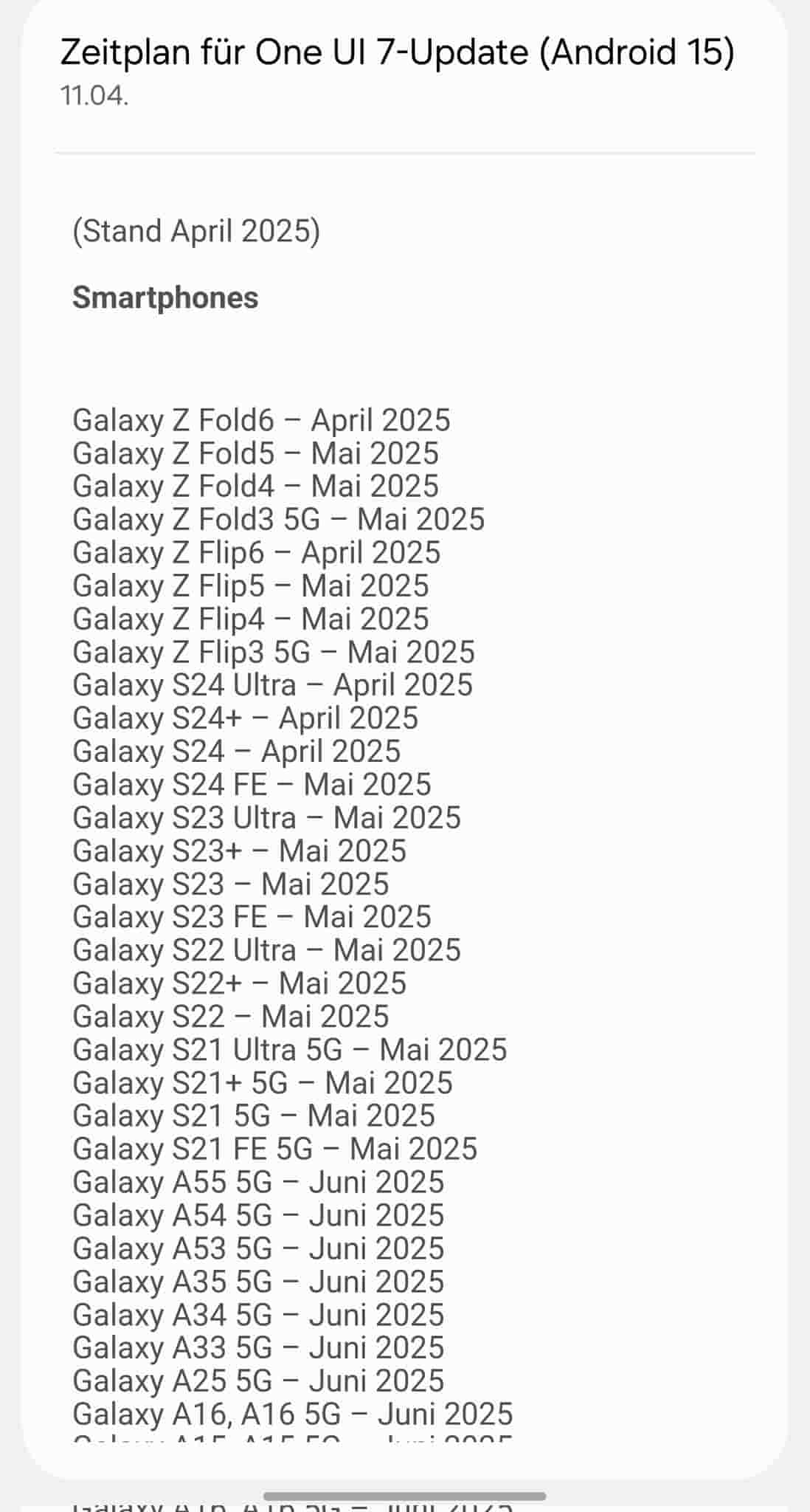 As per the shared roll-out schedule, in Germany the official One UI 7 stable version update will reach the Galaxy S24 series and Galaxy Z Fold/Flip 6 smartphone users this month in April 2025. Next month in May 2025, it will be rolled out to the Galaxy S23 series (FE included), Galaxy S22 series (FE included), Galaxy S21 series (FE included), Galaxy Z Fold/Flip 5, Galaxy Z Fold/Flip 4, Galaxy Z Fold/Flip 3, and Galaxy S24 FE smartphone users.
