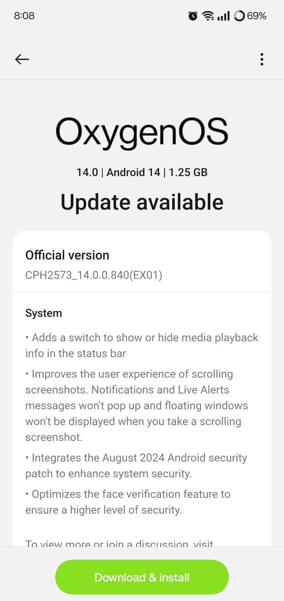 The update also includes the August 2024 Android Security Patch. With a total size of 1.25GB, the update is currently in the rollout phase and should reach all users within a week.