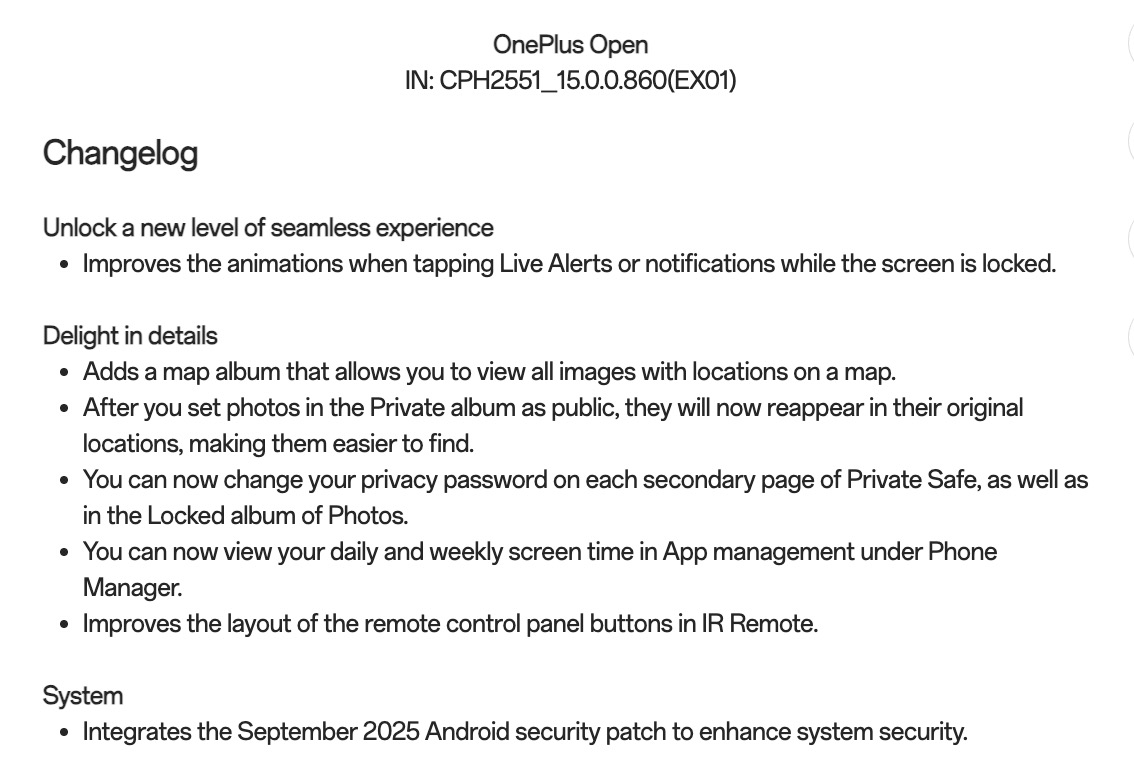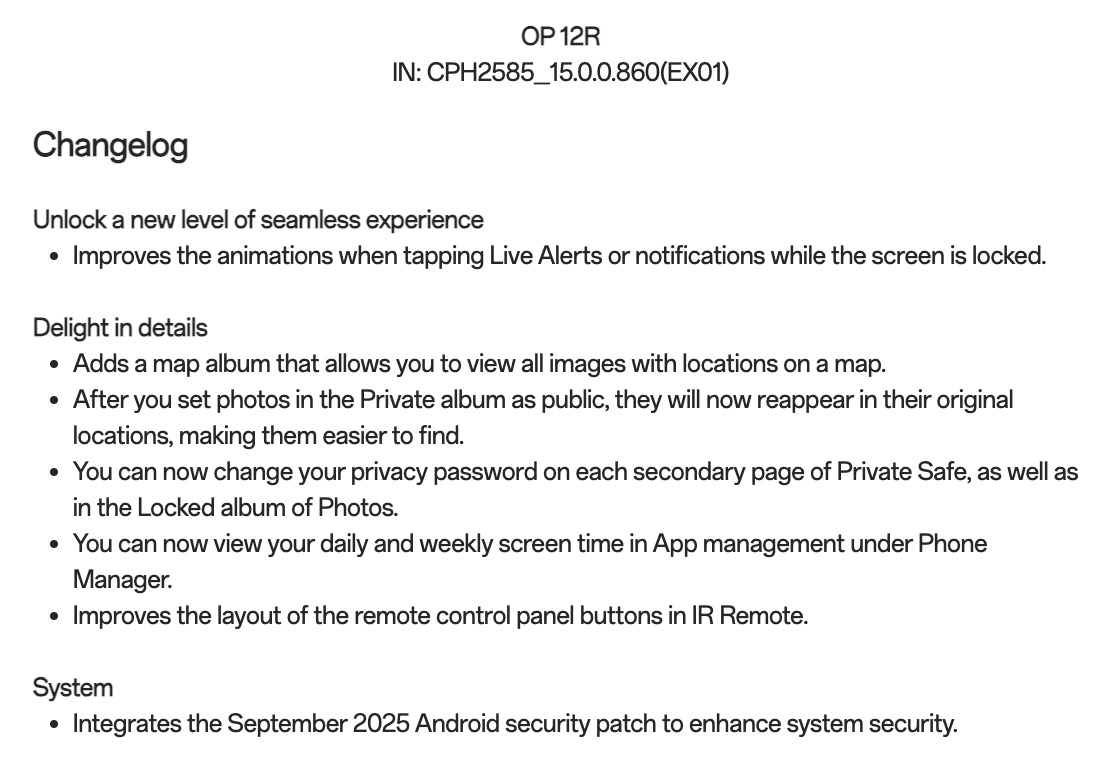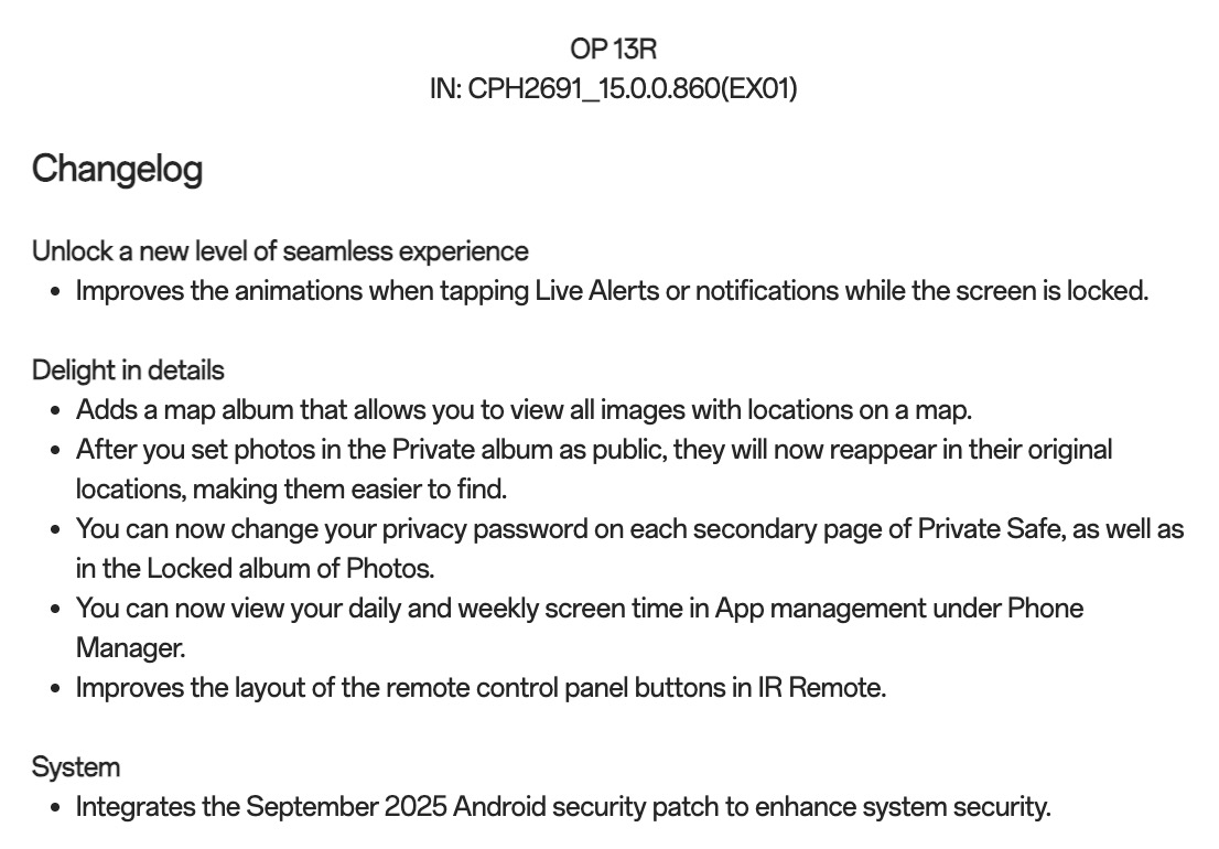 Lastly, the update brings the September 2025 security patch to the OnePlus Open, OnePlus 13R, and OnePlus 12R. If the update is available, your phone will alert you with a notification. Alternatively, you can manually check for it by going to Settings > Software update. If available, the update prompt will appear on the screen.