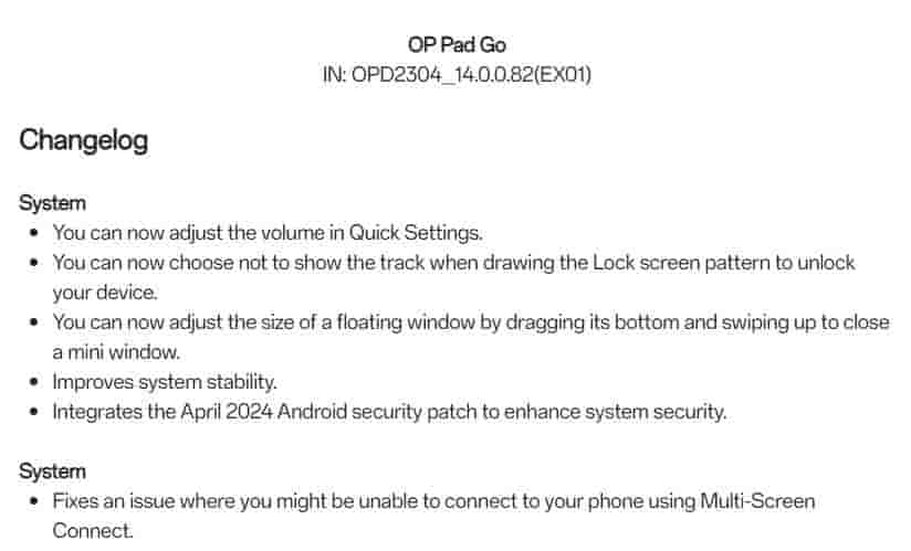 OnePlus Pad Go now receiving OxygenOS 14.0.0.82 update: April 2024 Security Patch in India Region