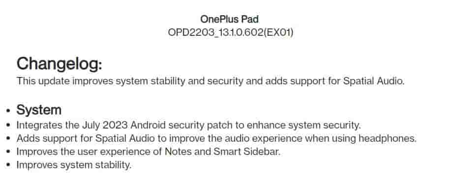 This new update comes with the firmware version OPD2203_13.1.0.602(EX01). It integrates the July 2023 security patch to enhance the system security, improves system stability, and adds support for Spatial audio.