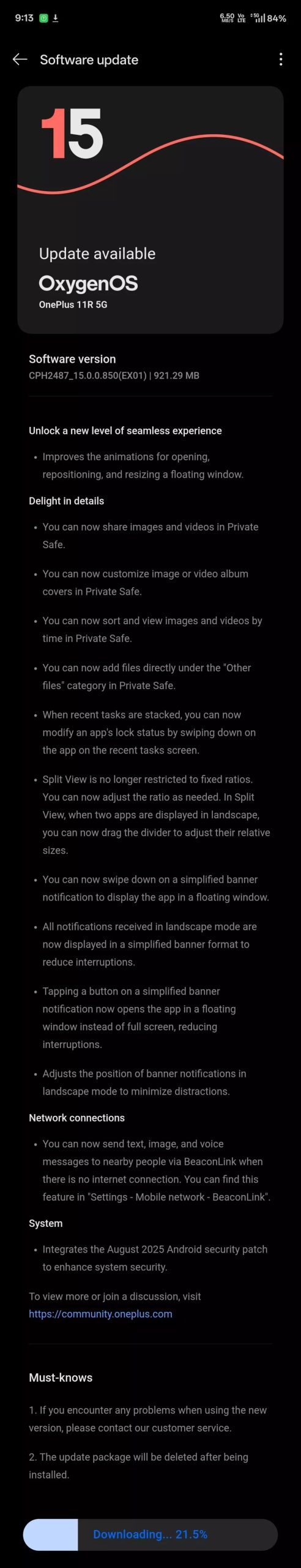OnePlus Rolls Out August 2025 Update for OnePlus 11, 11R, and 10T with BeaconLink Support and More