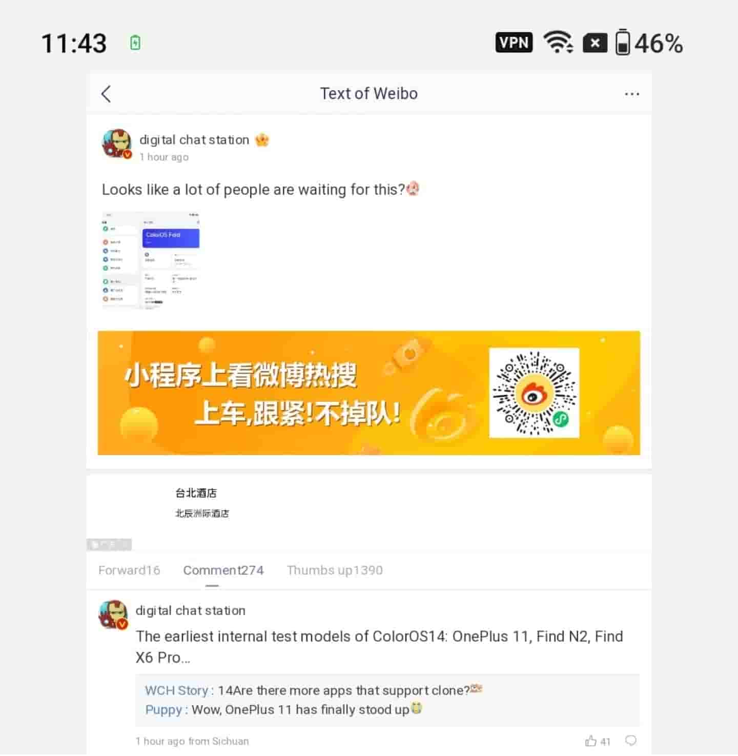 No other specific details about the custom UI have been shared however, in the comments section, the tipster has also mentioned the earliest internal test models of the ColorOS 14 for the OnePlus 11, OPPO Find N2 and the OPPO Find X6 Pro devices. To add, we had previously shared some of the features and the list of ColorOS 14 supported devices.