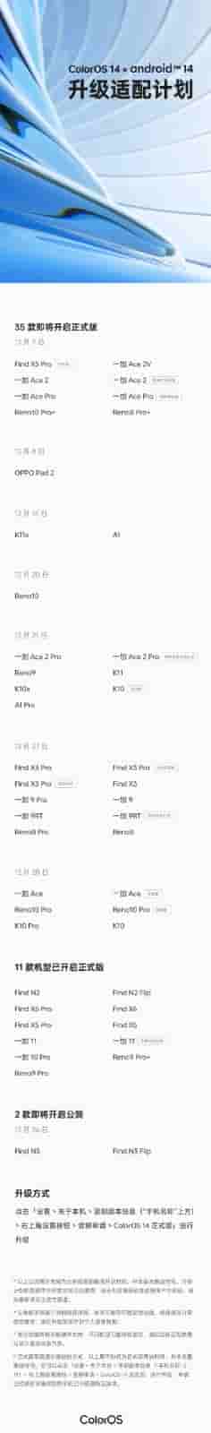 Oppo officially releases ColorOS 14 upgrade adaptation plan for December in China; 35 models to receive the official version soon