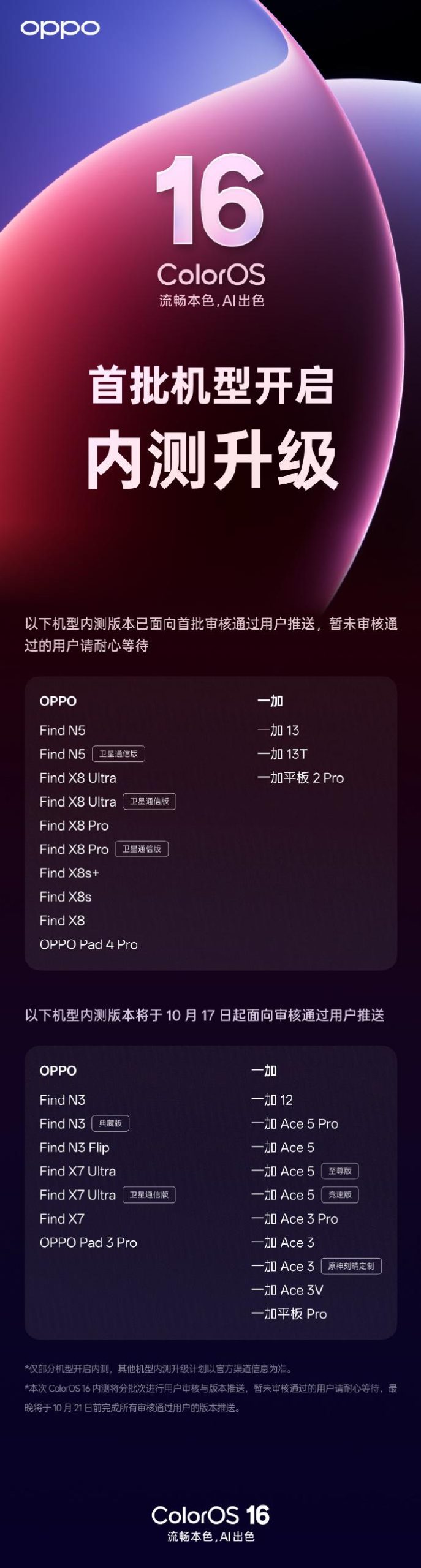 Oppo Find X9 series, Oppo Pad 5, OnePlus 15, and OnePlus Ace 6 will be the first to be equipped with ColorOS 16 in China.
