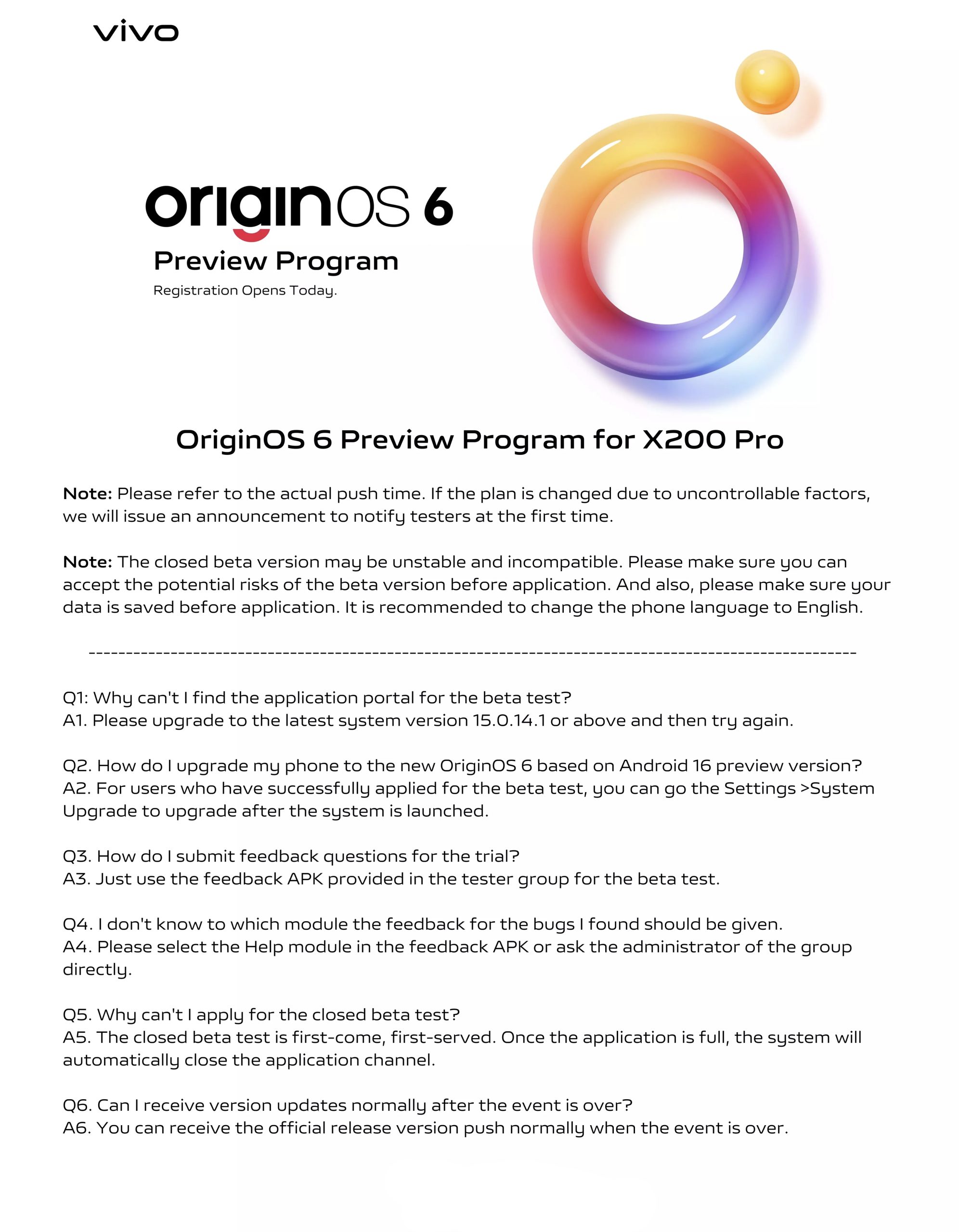 Vivo has officially announced that the OriginOS 6 Preview Program registration for the Vivo X200 Pro and iQOO 13 in India is now open. While the company has not revealed the number of applications it will accept, it confirmed that enrolment will be processed on a first-come, first-served basis.