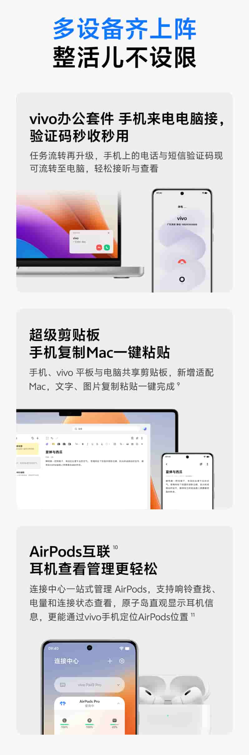 The inter-connectivity experience with OriginOS has also been improved, and users will be able to attend calls and use verification codes instantly on their connected computer devices. Users will also now be able to copy on their smartphones and then directly paste it onto their MacBook. An AirPods connectivity headphones view and management display is also there as part of the inter-connectivity related upgrades. A few features additions have also been brought on the Blue Heart Little V Intelligent Body, Atomic Island, Atomic Walkman, Input Method, Smart Car, Accessible Calls, and Battery Life.