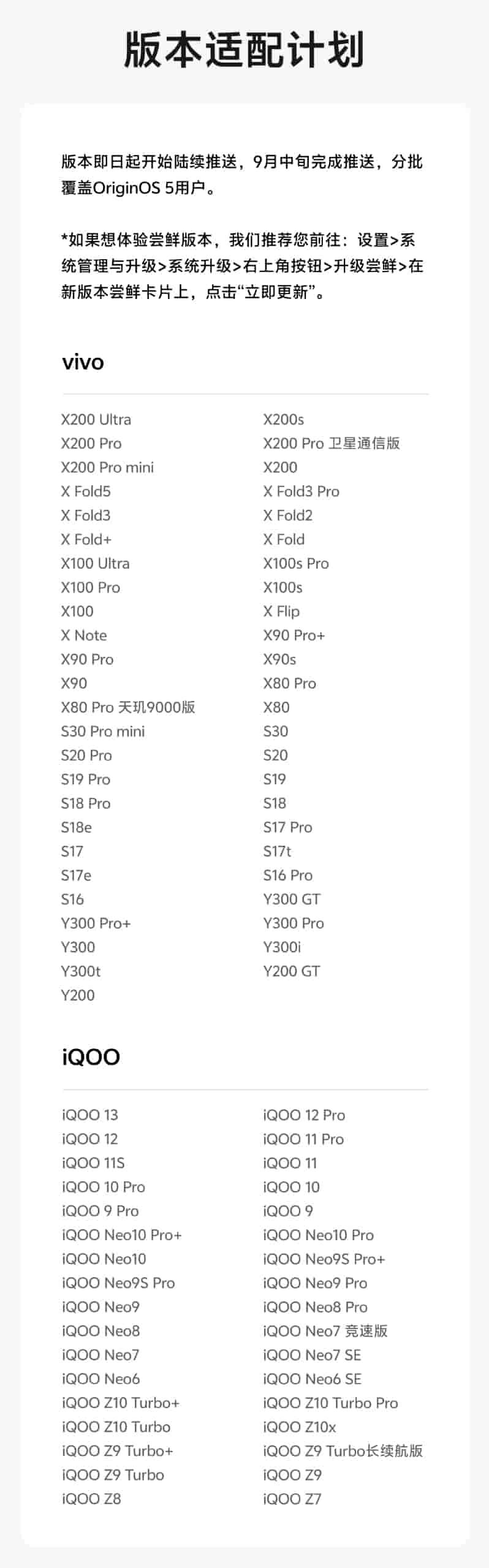 Check out the other eligible Vivo and iQOO devices that will be receiving this OriginOS August 2025 update below.