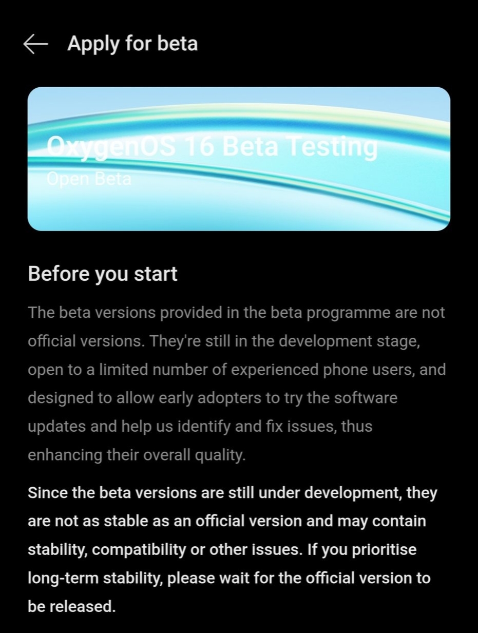 Now, ahead of the official launch of OxygenOS 16, OnePlus has officially started accepting applications for OxygenOS 16 Open Beta testing from OnePlus 12 users. If you are a OnePlus 12 user, you can check the software update beta program to see if you have received any notification about the application or not.