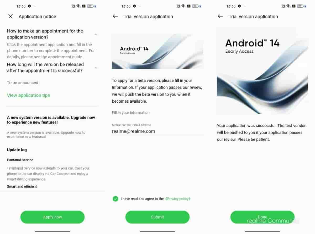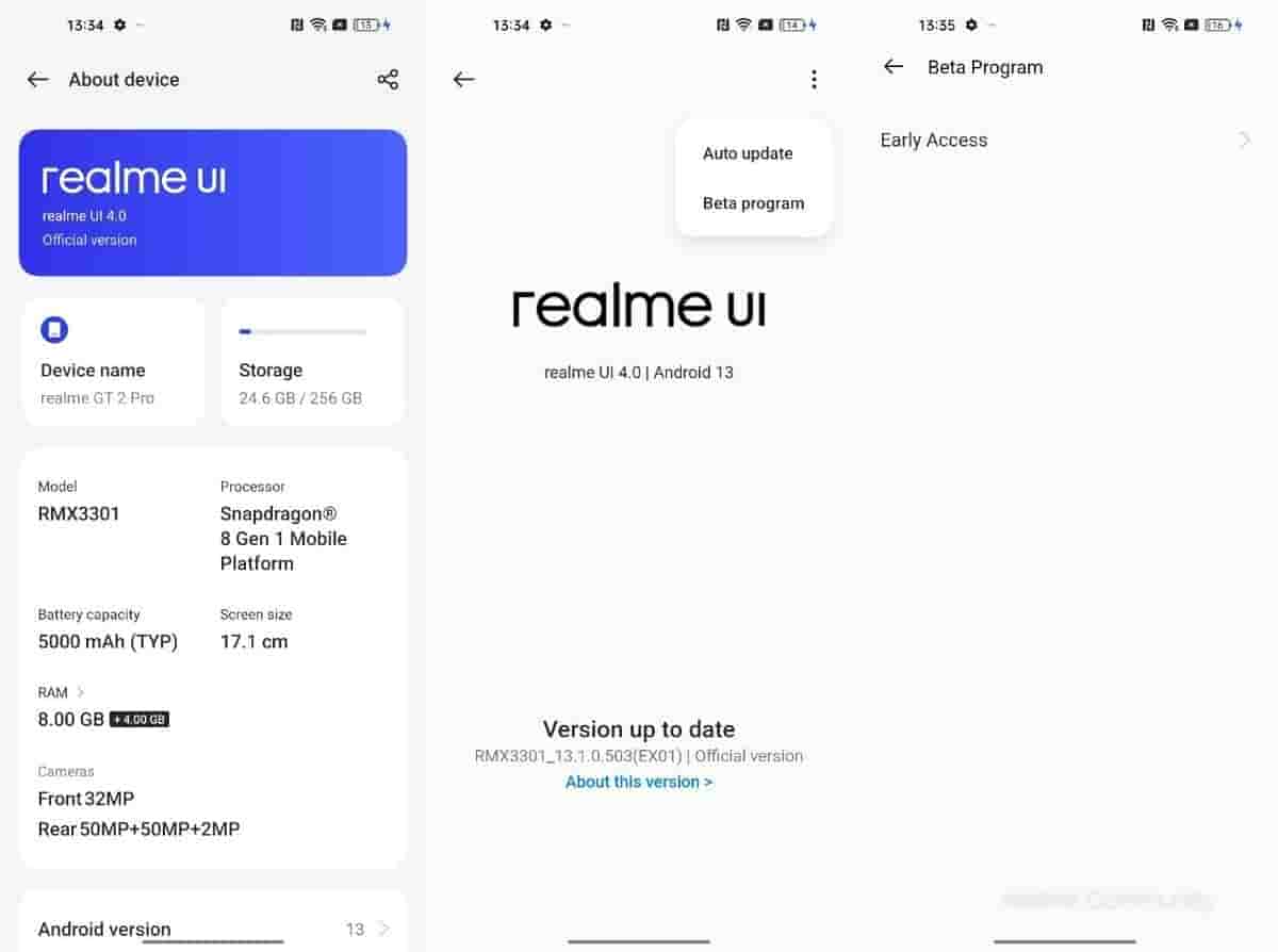 Settings → About device → Click on the “realme UI 4.0” banner at the top → Click on the three dots in the top right corner → Beta program →Early Access →Apply Now → Submit your details and finish the apply